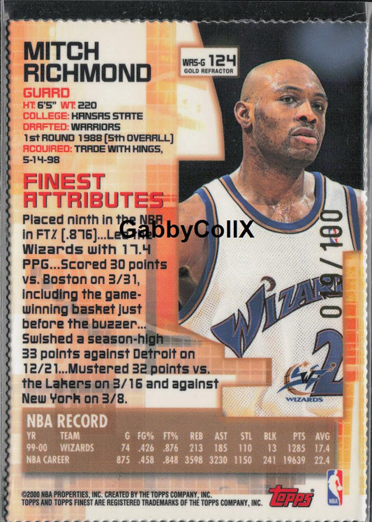 2000-01 Topps Finest #124 Mitch Richmond Gold Refractor Die Cut /100 #moni