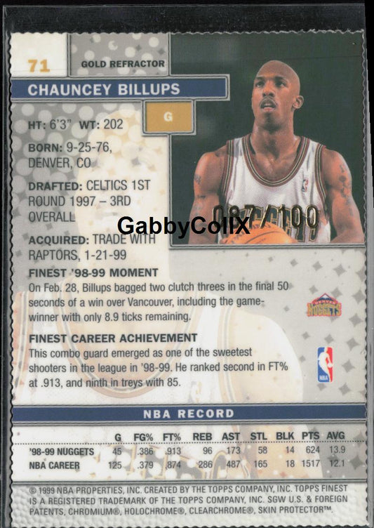 1999-00 Finest #71 Chauncey Billups Gold Refractors Die Cut/100 #mook