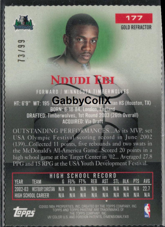 2003-04 Topps Pristine #177 Ndudi Ebi Gold Refractor Die Cut /99 #moom