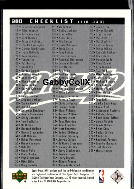 2003-04 Upper Deck MVP #200 Michael Jordan #iurl