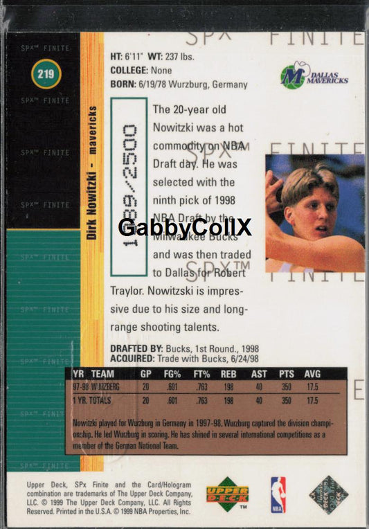 1998-99 Upper Deck #219 Dirk Nowitzki 1998-99 SPx Finite Rookie Update #/2500 #rczm